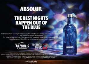 Absolute nights @ Republic Its time to "Make your night Absolut nights " with the new Limited edition by Absolut vodka. We present to you DJ I.Saleh all the way from Egypt. This Friday December 30th 2016 at Republic the only entertainment bar in Amman.