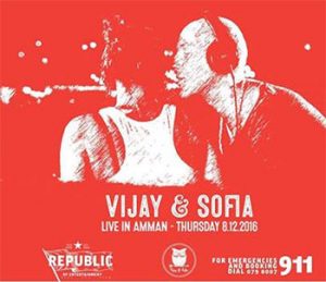 Vijay & Sofia Live @ Republic Thursday, December 8 at 9 PM - 3 AM It's time for another BIG journey in the heart of Amman!! On Thursday the 8th of December 2016, ROE will transform your night into a merry go round for your senses, as Belgian artists VIJAY & SOFIA will be taking control of our decks, with their mix of Nu-Disco, Deep-House, Melodic or Tropical House music. So prepare yourselves for a surreal night filled with sets …