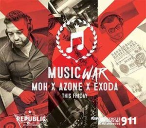 Republic Presents Music War @ Republic On 28/4/2017 - 9:00pm till 3:00am Music is not just about tunes and words... it is a WAR!!! This Friday, listen as the music soars with another outstanding MUSIC WAR at Republic featuring the exceptional DJs MOH x AZONE x EXODA behind the decks playing back to back unleashing some mad beats on the dance floor. So show us what you got when the beat drops this weekend! Republic reserves the right to select …
