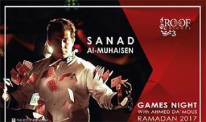 Sanad AL Muhaisen @ The Roof Ramadan Nights Tuesday 30/5/2017 - 9:30pm - Games Night at THE ROOF Ramadan Nights 3 لليلة مميزة في ذا روف لجميع أفراد العائلة العديد من المسابقات والجوائز التي تناسب الجميع بمشاركة المذيع الاردني "أحمد دعموس" وأصغر ساحر في الاشرق الاوسط "سند محيسين" كل يوم ثلاثاء طيلة شهر رمضان المبارك في ليالي ذا روف رمضان اقوى خيمة رمضانية في الاردن للحجز والاستفسار يرجى الاتصال على 0779813181