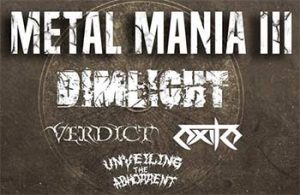 Metal Mania III @ Rainbow Theatre Friday, January 13th, 2017 at 5 PM - 10 PM JoScene Presents Metal Mania III Featuring Dimlight - Greece Verdict - UAE Exile - Jordan Unveiling the Abhorrent - Jordan Door open at: 5:00 PM Ticket: 10 JD's --------------------------------------------- Rules & Instructions: 1- Smoking, Drinking, Eating inside the theater is STRICKLY forbidden. 2- Standing on the seats is forbidden. --------------------------------------------- This event powered by: JorZine Magazine --------------------------------------------- For more info: Muhammad.Jaber@Joscene.com Kindly, lets follow …
