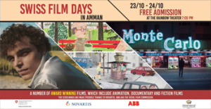 يسر السفارة السويسرية في الأردن بالتعاون مع الهيئة الملكية للأفلام وبدعم من Novartis و ABB دعوتكم لحضور مجموعة أفلام سويسرية قصيرة (تحريكية وروائية ووثائقية)" يومي الثلاثاء 23 والأربعاء 24 تشرين الأول 2018 في تمام الساعة السابعة مساءً. يسبق العرض يوم الثلاثاء حفل استقبال في تمام الساعة السادسة مساءً. نتطلع لاستقبالكم. الدخول مجاني. The Embassy of Switzerland in Jordan in cooperation with the Royal Film Commission and with the support of Novartis and ABB invites you to attend the screening of: …
