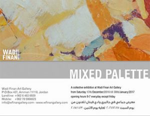 Mixed Palettes @ Wadi Finan Art Gallery A collective exhibition from Saturday 17/12/2016 until 30/1/2017 Opening hours from 9-7 everyday except Friday