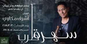 Extraordinary Tarab Night With ASHRAF MAKKAWI ! This Wednesday 20.2.2019 at 8:00pm live tarab at your one and only place... For Reservations call 07 700 700 50 W A T A R Z I R Y A B | Where Food & Memories Are Made