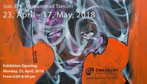 Zara Gallery, Grand Hyatt Amman Hotel, is pleased to present solo exhibition by Jordanian artist Mohammad Tamimi opening on Monday, 23, April, 2018 at 6:00pm. Tamimi was born in 1988 in Amman. The artist obtained a B.A. degree in graphic design from Philadelphia University in Jordan. Tamimi has taken part in several group exhibitions in Jordan, Russia and London in 2013 and 2015, and was featured in a double show in Al-Bareh Art Gallery in Bahrain in 2015. In 2013, …