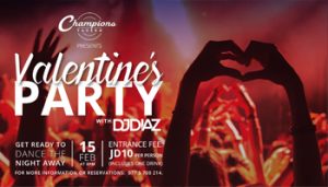Get ready to dance the night away with DJ Diaz at the ultimate Valentine's Party! Entrance fee: JD10 (Including one drink)