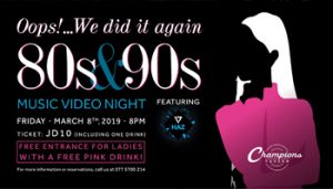 80s & 90s Music Video Night @ Champions Marriott Amman
