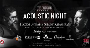 We had a great time on Friday and we wanted to do one last gig before shady goes back to Canada. LAST PERFORMANCE ALERT HBmusic welcomes you to join us in our acoustic night while we play ur favorite songs. Hazem Bawab(Vocals and Guitar) Shady Khashram (lead guitar) Ali Fanni (Drums) and Sleman Alaa Mosleh (Bass). Ticket Price is 10JD All Profits are donated to charity Call Anas 0775700214 for table booking