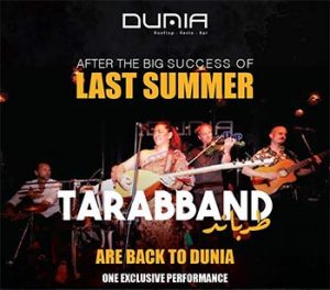 TarabBand @ Dunia Rooftop On Wednesday 5/4/2017 - 9:00pm onward Tarabband in another performance at Dunia Rooftop this upcoming Wednesday ..... Limited seats available ...... For reservation or for more information please call: 0797506070