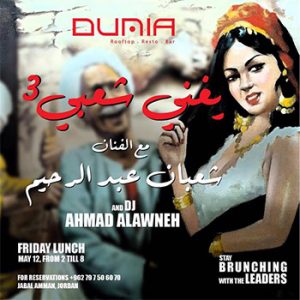 Sha3ban Abdul Raheem @ DUNIA Rooftop Along with DJ Ahmed Alwaneh On Friday 12/5/2017 - 2:00pm till 8:00pm Brunch Time! شعبان عبدالرحيم يغني شعبي @ دنيا رووف توب مع دي جي احمد العلاونه