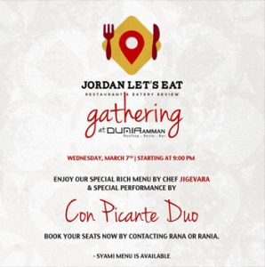 Don't Be Shy & Start Hanging out with the best group in town, we are the big family of JLE Jordan Let's Eat and we will be gathering on Wednesday March 7th @ one of the best restaurant club Dunia rooftop, a night to remember from 9pm till midnight, rich dinner menu with live band, fasting menu ( Syami ) is available. For more information please contact Group Admins Jay Abbasi 0788300300 Rania 0795866006