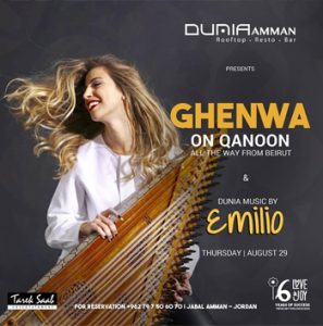 Next Thursday and all the way from Lebanon , dont miss the spcial performance of Ghinwa Nimnoum on Qanoon & DJ Emilio ...
