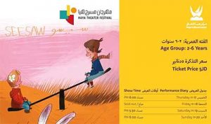Kids Play "Seesaw" @ Haya Cultural Center ضمن فعاليات مهرجان مسرح هيا وبمناسبة أربعين عاماً ومن خلال إطلاق الموسم الرابع من مسرح الطفل عرض مسرحية الاطفال "سيسو" من الأردن وبريطانيا @ مركز هيا الثقافي من 17/11/2016 لغاية 20/11/2016 فريق عمل مركز هيا الثقافي يتدرب على أداء مسرحية "سيسو" مع المخرجة البريطانية سارة آرجنت والتي ستقدم بالتعاون مع مسرح يونيكورن في بريطانيا، وبدعم من المجلس الثقافي البريطاني تتوفر تذاكر بـ 5 دنانير. أهلا وسهلا بكم في الأسبوع الأخير ل"مهرجان مسرح هيا"، …