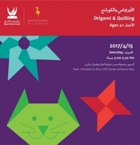 ورشة تعليمية للفنون الورقية "الأوريجامي والكويلينج" أطلقوا العنان لإبداعكم! بالتعاون مع مركز هيا الثقافي يسرنا أن نقدم لكم جلسة تعليمية للفنون الورقية، احجزوا مقاعدكم الآن واستمتعوا بعمل مختلف الأشكال! -الأعمار:4+ *الرسوم مشمولة ضمن دخولية المركز وقيمتها دينارين In collaboration with Haya cultural centre, we are glad to offer you a paper art session, Book your seat now and enjoy creating different shapes. -Ages: 4+ *Fees included in the 2 JOD center entrance fees
