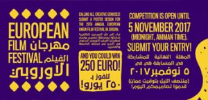 The longest-running foreign film festival in Jordan is on. From 23 November to 2 December 2017, discover 20 recent European productions Award-winning movies; music performances; mobile phone film competition; poster competition; workshops; masterclasses; exhibitions; meetings with international film makers, producers and actors; multimedia actions; debates; European food, etc Funded by the European Union in Jordan Implemented by EUNIC Jordan In partnership with: Greater Amman Municipality SAE Institute Ministry of Tourism Jordan Tourism Board UNICEF UNESCO Free entrance Arabic and English …