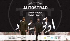 اشتقتوا لأوتوستراد؟ أوتوستراد راجعين بحفلة من أقوى نوع في مركز هيا الثقافي يوم الجمعة 19-4! جهزوا حالكم ! المكان: مركز هيا الثقافي - الشميساني سعر التذكرة: 10 دنانير الحفلة بتبدأ الساعة 7:00 So, you miss jamming to Autostrad tunes They are back to rock your night in a concert too good to be missed Join us on the 19th of April Venue: Haya cultural center – Al Shmeisani Ticket Price: 10 JDs Show starts at 7:00 PM