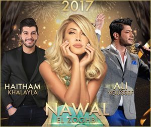 NYE Party: Nawal El Zoghbi @ Le Royal Hotel, Amman Featuring Haitham Khalaily & Ali Youssef Saturday, December 31, 2016 - at 9 PM - 3 AM Celebrate New Year's eve with the Star Nawal el Zoghbi For tickets or for more information please call: 0775655575 - 0795655575 حفل رأس السنة 2017 مع النجمة اللبنانية نوال الزغبي @ فدق الرويال - عمّان, الأردن بالإضافة لنجم أراب ايدول هيثم خلايلي، والفنان علي يوسف للحجوزات: 0775655575 - 0795655575 الحفلة بتنسيق من evenTree