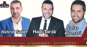 Jafar Omari & Hadi Tarab & Ashraf Saber @ Nagham Restaurant On Thursday 1/12/2016 - 9:30pm onward سهرتنا احلى في مطعم نغم فندق الرويال عمان يوم الخميس 1/12/2016 مع ملك الطرب النجم هادي طرب وامير الاحساس والرومانسية النجم اشرف صابر والنجم المتألق جعفر العمري في اجمل سهرة فنية واجواء عائلية مميزة واشهى الاطباق اللبنانية للحجز: 0777722229 - 0799994567