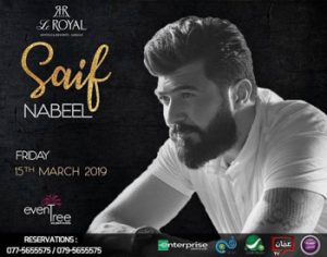 حفل سيف نبيل المصادف ١٥/٣/٢٠١٩ في رويال عمان - الاردن للحجز والاستفسار الاتصال على +962775655575