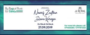 My Magical Music For Events Presenting a night to remember with the star @Nassif Zeytoun along with the Super Star Diana karazon Accompanied With The Best DJ in Town Raja Kamar Raja Ya Raja on 27/09/2019 at Le Royal Hotels and Resorts - Amman نقدم لكم ليلة من العمر مع نجم الملايين الفنان / ناصيف زيتون ووسوبر ستار العرب الفنانه / ديانا كرزون 27/09/2019 وبمشاركه افضل دي بالاردن رجا يا رجا في فندق / الرويال / عمان ** VIP - …