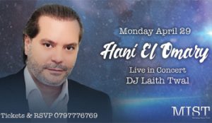 After a long wait since his last visit to Amman! The Lebanese star Hani El Omary will be performing live at MIST in a very special dinner concert on the second day of #Easter. It will be an unforgettable festive celebration including live #DJ music played by Laith Twal and a unique 3-course dinner. Buy your tickets now at MIST. For more info call us at 0797776769.