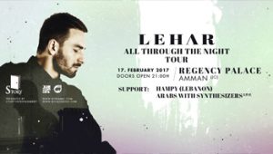▬▬ KEY FACTS ▬▬ Lehar - All Through The Night Tour 2017 Presented by Story Entertainment Friday, 17. February 2017 Regency Palace, Amman, JO ▬▬ LINE UP ▬▬ Lehar www.facebook.com/Leharmusic Support: Hampy (Lebanon) www.facebook.com/hamparian Arabs With Synthesizers (Live) www.facebook.com/ArabsWS ▬▬ INFO ▬▬ All Through The Night – a musical concept to realize the monolithic vision of Lehar. In Early 2017, Lehar is hosting his very own club series, capturing the DJ booth from start to finish. One artist, one night, …