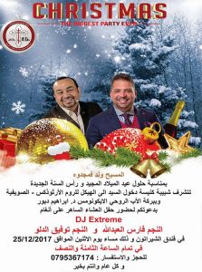 Christmas Party with Tawfeeq Al-Dalu & DJ Extreme @ Sheraton Hotel Sunday, December 25, 2016 - at 9 PM - 3 AM Merry Christmas and happy new year to all of u join us this year to our grand Christmas party ounder the name of The youth of the presentation of the lord church / room orthodox sweifiyeh that will take place in the sheraton hotel Amman , open rich buffet and with our beloved singer Tawfiq aldalo, Dj extreme and …