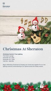 Christmas Carols & Tree Lighting December 18th, 2019 7:00PM - 8:00PM Green Lounge Celebrate Christmas by bringing your loved ones together for our tree lighting ceremony while listening to our special carols this holiday season.