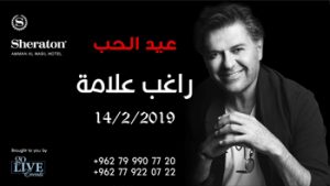 Jordan... Here we come!!! Valentines Day with Ragheb Alama !!! Let's celebrate this day with the Superstar Ragheb Alama on February 14th at the Sheraton Hotel Amman, Jordan. For an outstanding evening filled with love, dance, and great music you can call the number below for tickets and reservations: +962 79 990 7720 +962 77 922 0722 We can't wait to see you all there!!!