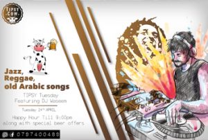 50% off on all alcoholic beverages all day long! DJ Marwan W Karadsheh will be spinning his original vibes For more info contact us at 0797400489 #tipsycow